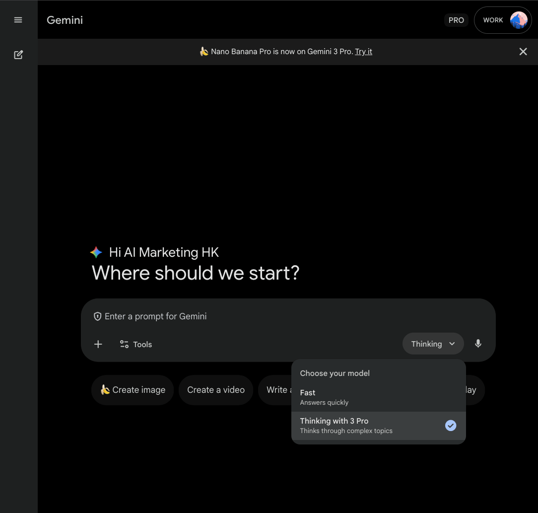 完成後就可以免 VPN 使用 Google Workspace 及 Gemini 的各大功能,包括最新推出的 Gemini 3.0 Pro 及 NanoBanana Pro.