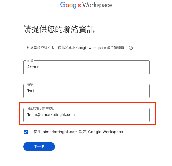 步驟一:去 HK Google Workspace Website