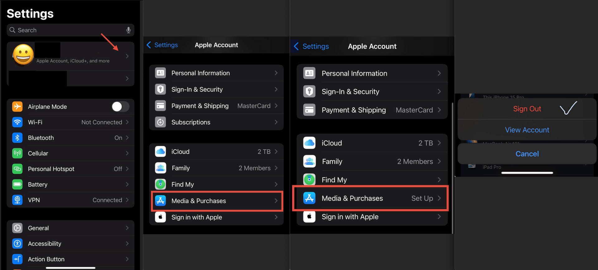 選擇Apple Account右邊個箭嘴